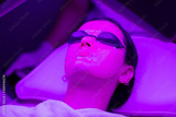 Young woman having purple LED light facial therapy treatment in beauty salon. Beauty and wellness