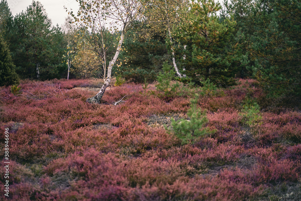 Piękne kolorowe wrzosowisko Mostówka w Polsce