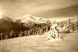 Attractive image of white spruces on a frosty day. Location place Carpathian ski resort, Ukraine.