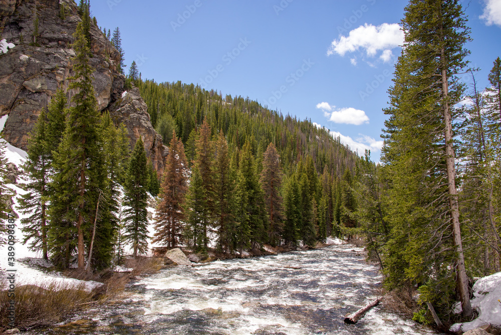 trees by the fast moving river