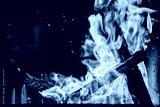 Burning fire in brick fireplace with soft warm orange beautiful flames.