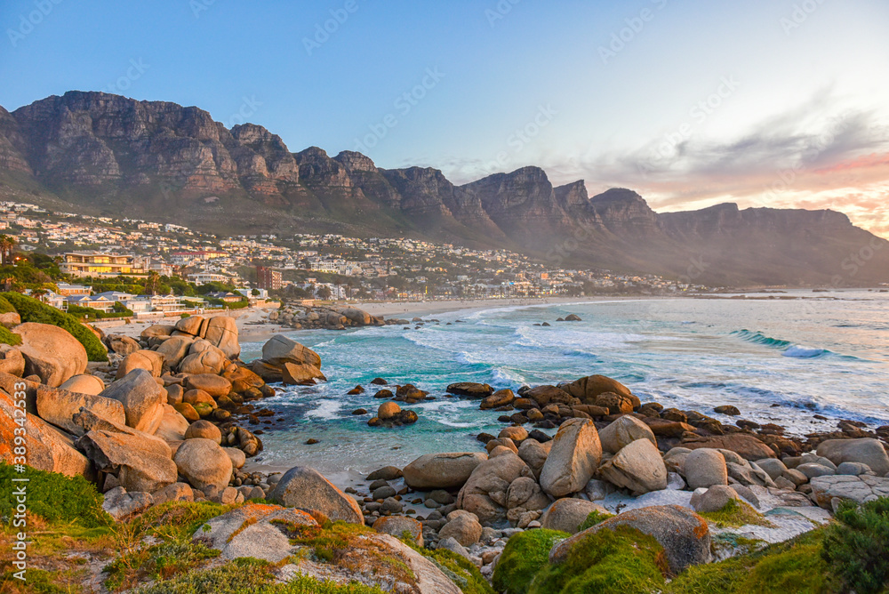 Camps Bay with 12 Apostles at the background, Cape Town, Western Cape, South Africa