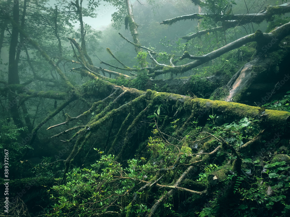 屋久島の台風の後の倒木