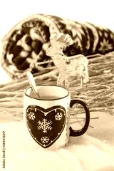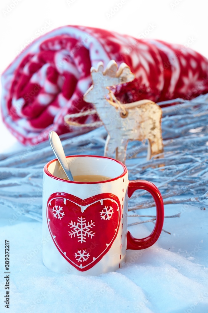 Christmas time with tea mug and reindeer.