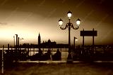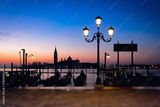 Morning view of the embankment in Venice, Italy. Gondolas parked off the coast. Colorful landscape, long exposure, tilt-shift effect.