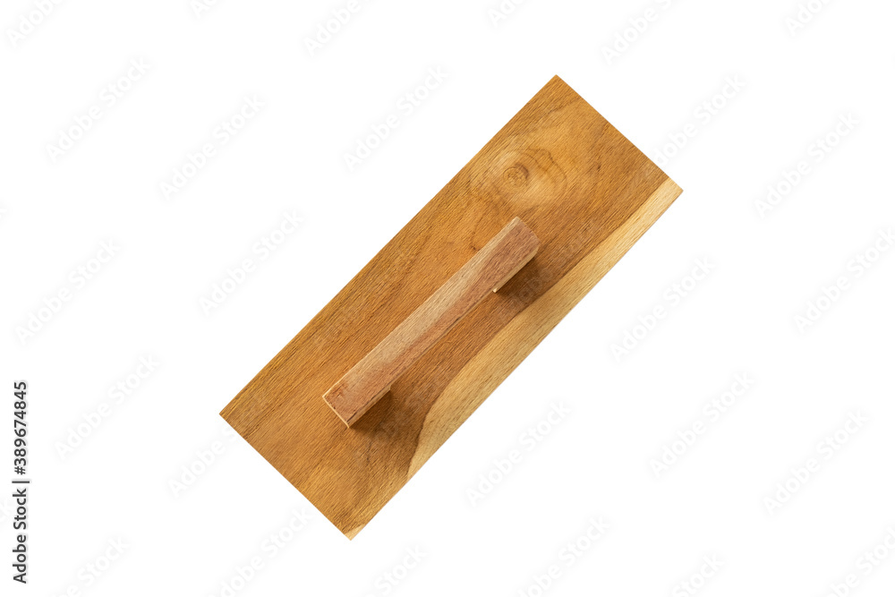 Wooden trowel for plastering cement work isolated on white background with clipping path