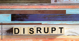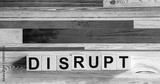 Disrupt , word on wooden cubes with colored background