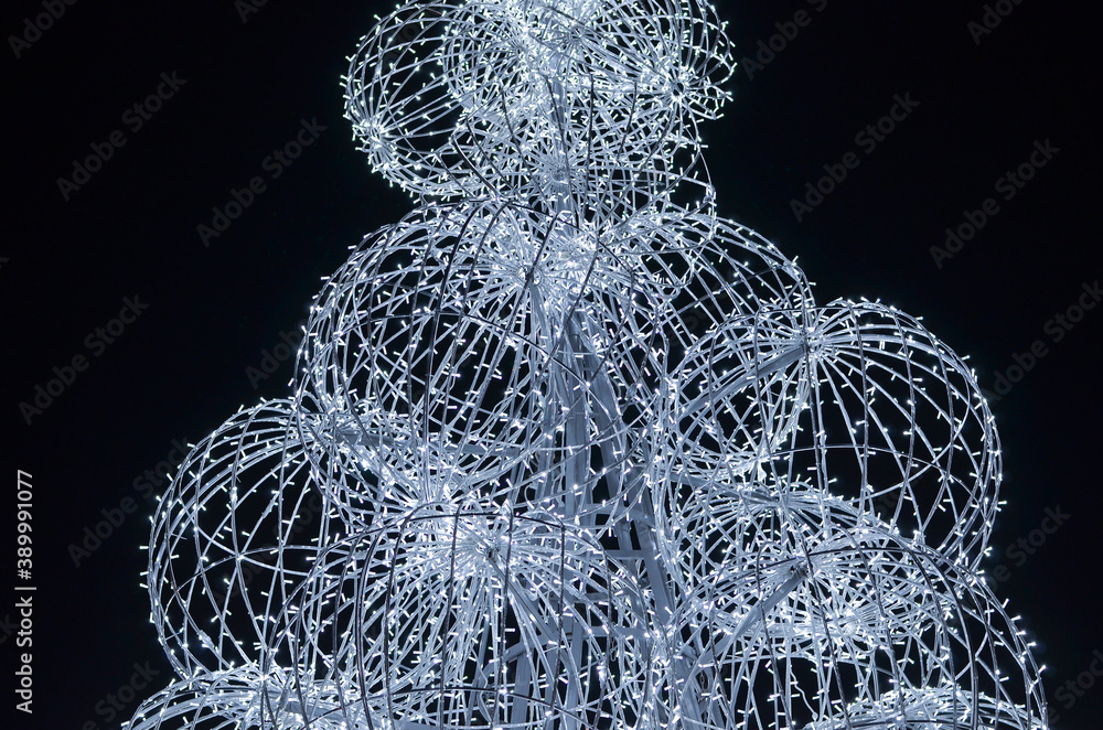 Creative new year tree skeletal made of balls with white led lamps for blinking light