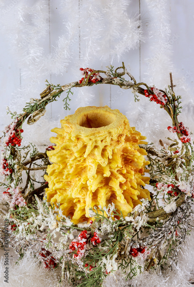 Sakotis traditional lithuanian cake in basket for Christmas.