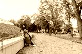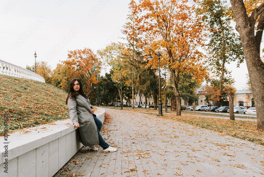 Portrait of a beautiful adult young woman on the background of autumn in the Park