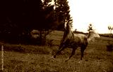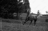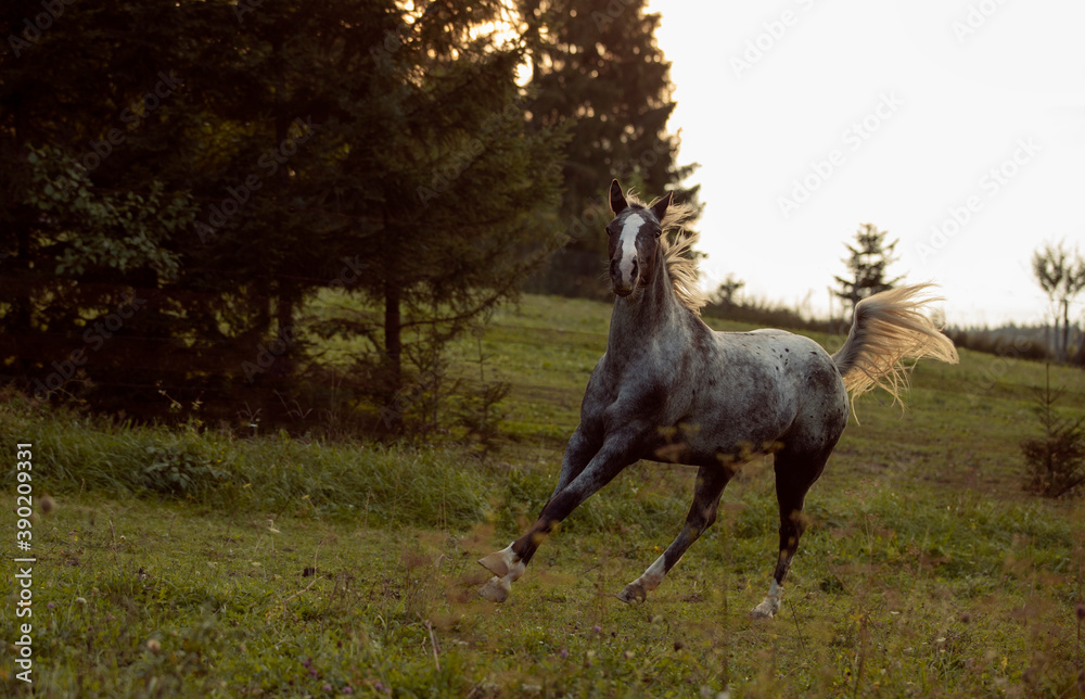 beautiful grey appaloosa horse running through green grass