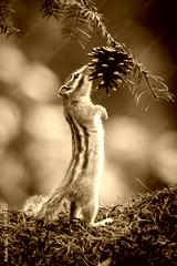 Siberian chipmunk (Eutamias sibiricus) in the forest in Noord Brabant in the Netherlands