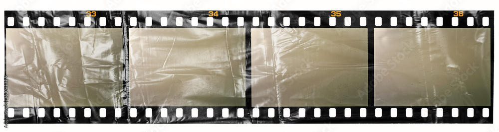 long detailed 35mm dia filmstrip behind real foil material on white. cool photo placeholder.