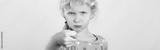 Child girl showing fig sign. Kid expressing strong negative emotion. Cute adorable blonde Caucasian preschool girl posing in studio on a light background. Web banner header.