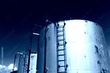 海辺のオイルタンク