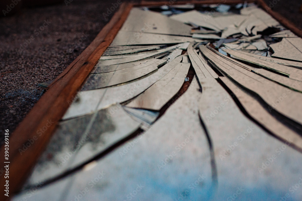 Broken mirror on the ground
