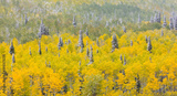 Snowing in the forest. Autumn. Big Cottonwood Canyon, Wasatch Range, Salt Lake City, Utah, Usa, America