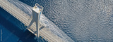 Aerial drone ultra wide panoramic photo of famous cable anti seismic bridge of Rio Antirio, Greece