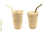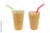 Iced cappuccino coffee on plastic glass cup isolated white background with clipping path included
