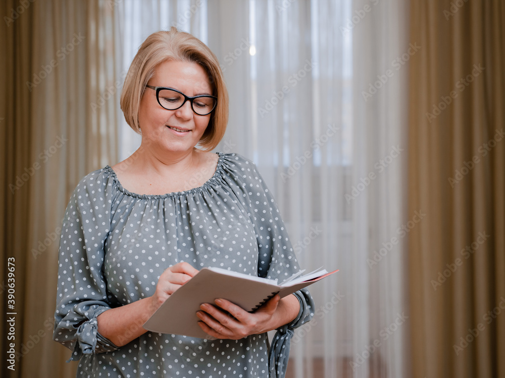 Portrait of a beautiful well-groomed Pensioner 50-60 years old in the room.