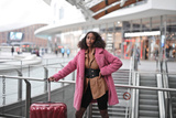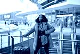 young woman with trolley in a station