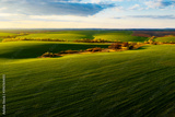 Splendid aerial photography of green wavy field in sunny day. Top view drone shot.