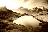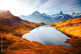 Great view of the Schreckhorn and Wetterhorn peaks. Location place Bachalpsee, Swiss alps, Switzerland.
