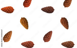 close up pine cones isolated white background