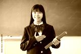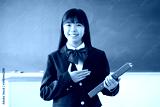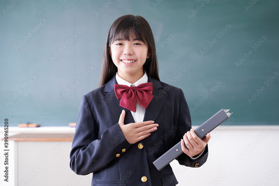 教室で笑顔で挨拶する日本人女子中学生