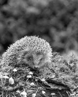 Hedgehog, Scientific name: Erinaceus Europaeus, wild, free roaming hedgehog, taken from wildlife garden hide to monitor health and population of this favourite but declining mammal, space for copy