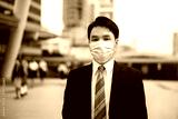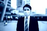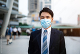 business man with medical mask during coronavirus (covid-19) pandemic in city