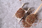 dried ground strawberries with a stalk and a leaf