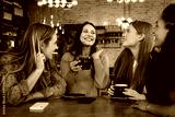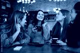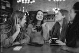 Happy young friends meeting in a coffee shop