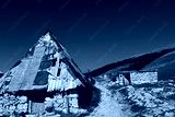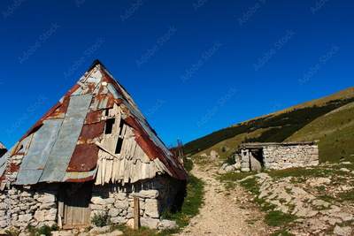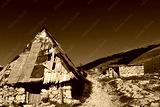 An old Bosnian house with holes in the roof in the old Bosnian village of Lukomir on the Bjelasnica mountain.
