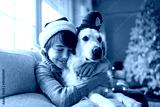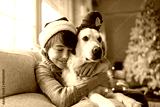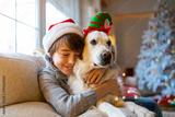 Boy and his dog enjoying Christmas together at home