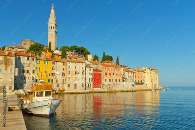 Old houses with the St. Euphemia church's tower.(Rovinj)