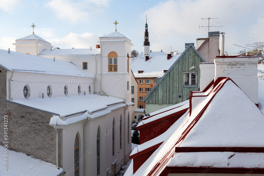 Tallinn, Estonia. Old Town Cityscape in Winter with Snow