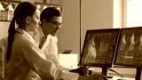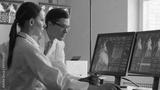 Professional medical doctors are maksing computer research in hospital office. Medicine, healthcare and cardiology concepts.