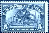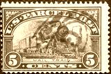 USA - Circa 1912 : a postage stamp printed in the US showing a steam locomotive with wagons Text: Mail train US Parcel Post