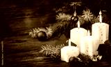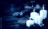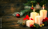 Christmas decoration with candles on the wooden table