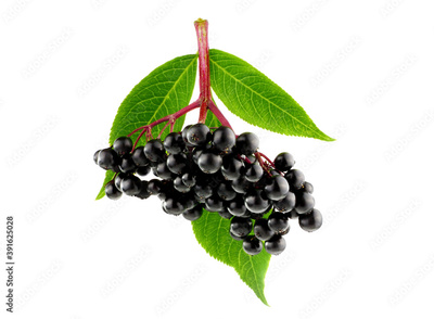 Elderberry or Elder (Sambucus) with Leaves. Isolated on White.