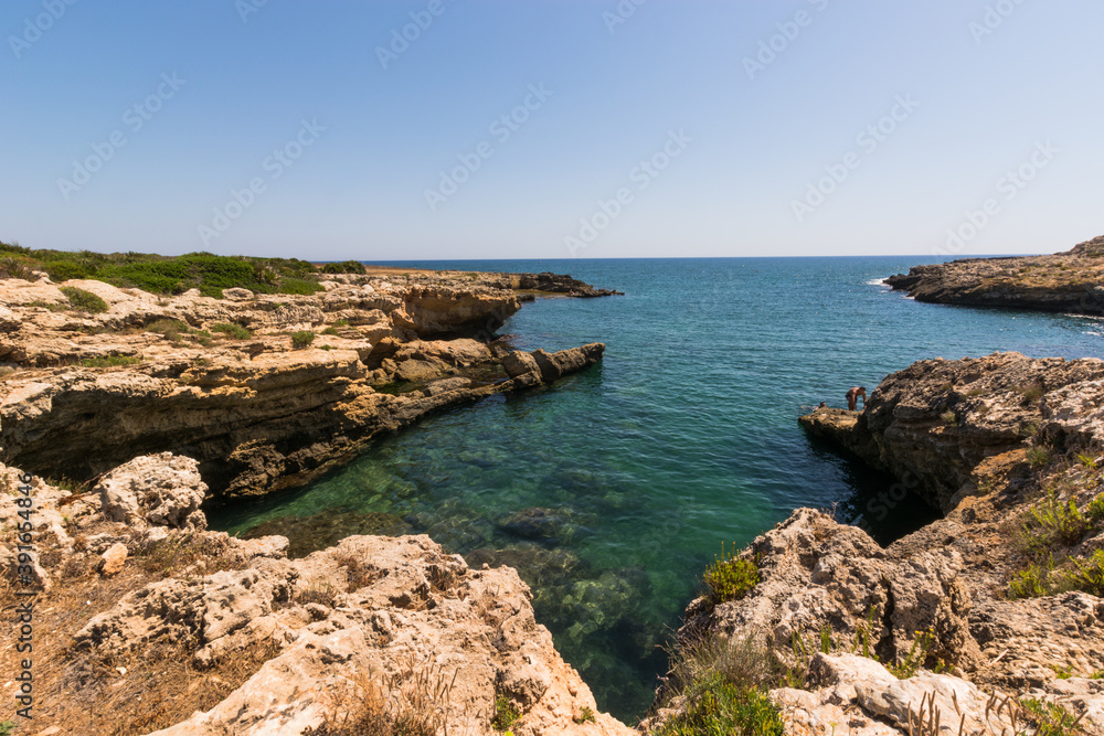 Cave of Pillirina surrounded by the sea under the sunlight and a blue sky in Italy