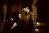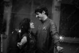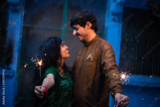 Happy young indian couple celebrating diwali festival looking at each other enjoying firecrackers as part of the celebration and holidays, Selective focus on sparkler