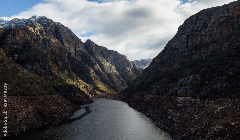 Aerial view over the Sanddrift dam in the Hex River valley in the Western Cape of South Africa