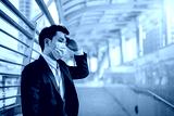 stressed business man with medical mask during coronavirus (covid-19) pandemic in city