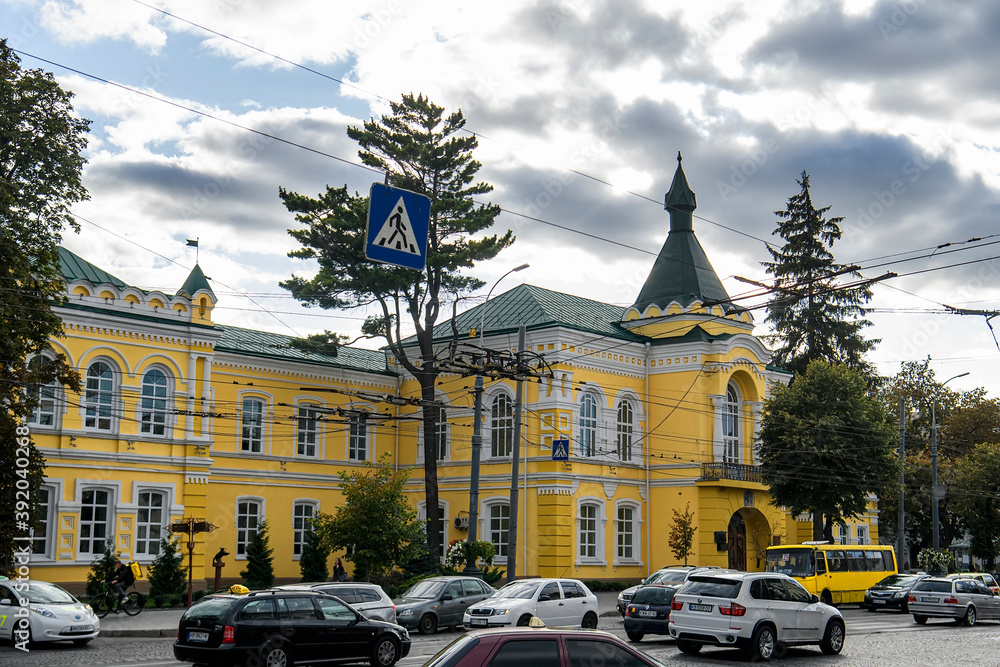 General view of Eclectic palace with elements of ancient and Byzantine architecture in Vinnytsia, Ukraine.