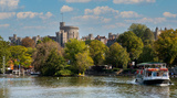 Windsor, Berkshire, England, UK. 2020. A tourist passeneger boat on the River Thames at Windsor, Berkshire, UK.