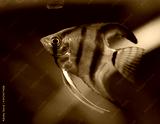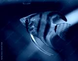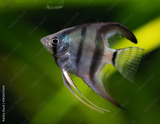 Pterophyllum scalare fish in a planted aquarium whit black background and a lot of plants
