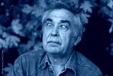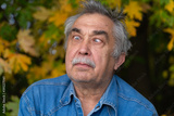 Portrait of 70-year-old elderly man, gesturing funny and comical, his expression looks cheerful.
