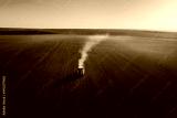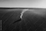 Tractor fertilizing wheat field, aerial view, hdr nature landscape.